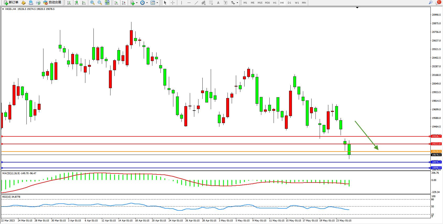 恒指HK50 4小时图