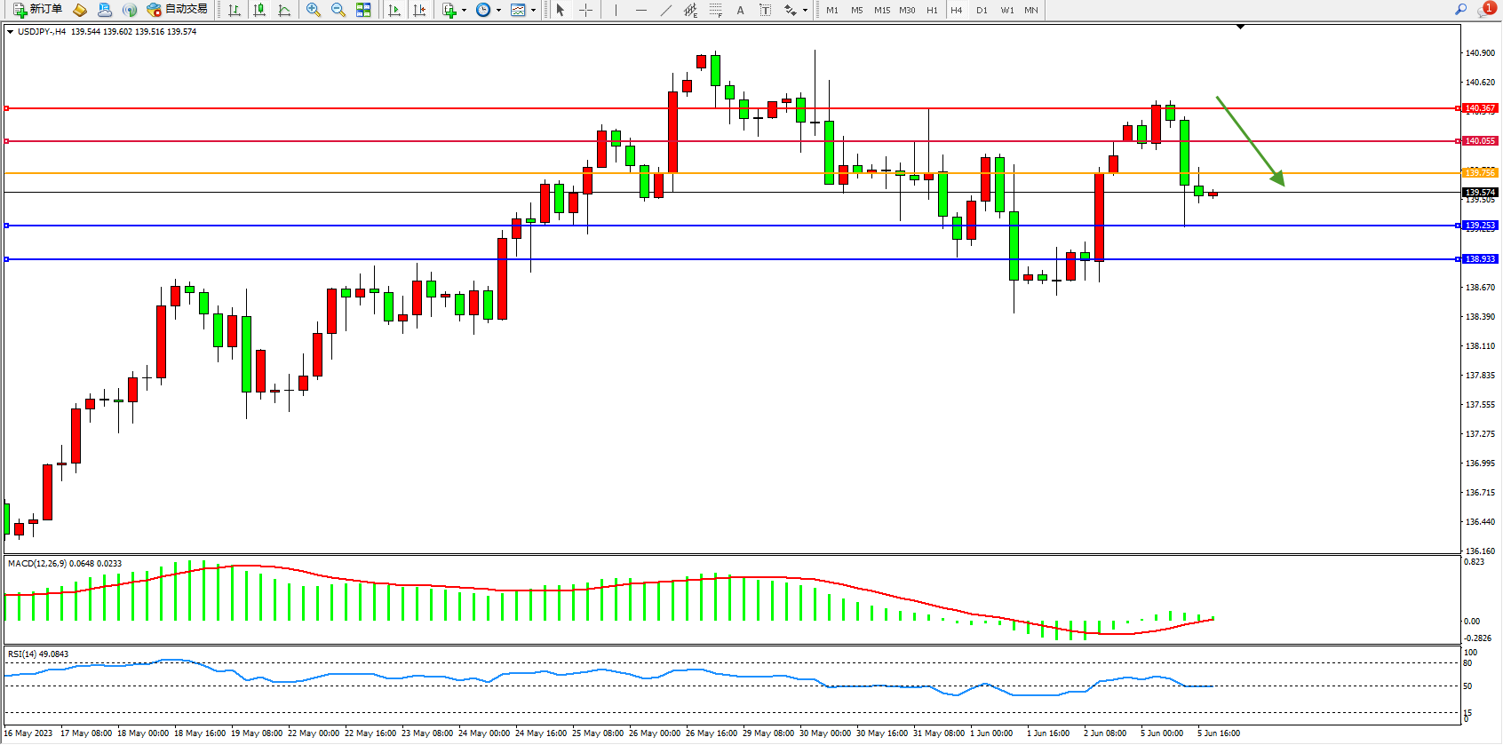 交易策略:139.756下方看跌,目标139.253 138.933