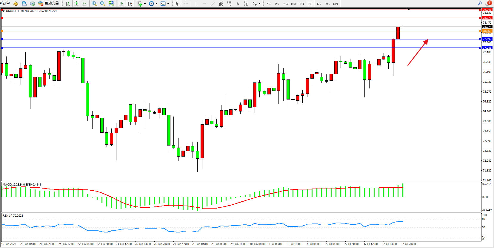 布油维持78.274附近震荡,随着美国进入夏季旅游高峰,以及沙特敢于提高对欧洲和亚洲的售价,原油需求前景开始变得更好。石油本周已经触底,只要全球经济衰退的担忧不至于变得疯狂,油价可能会走高。