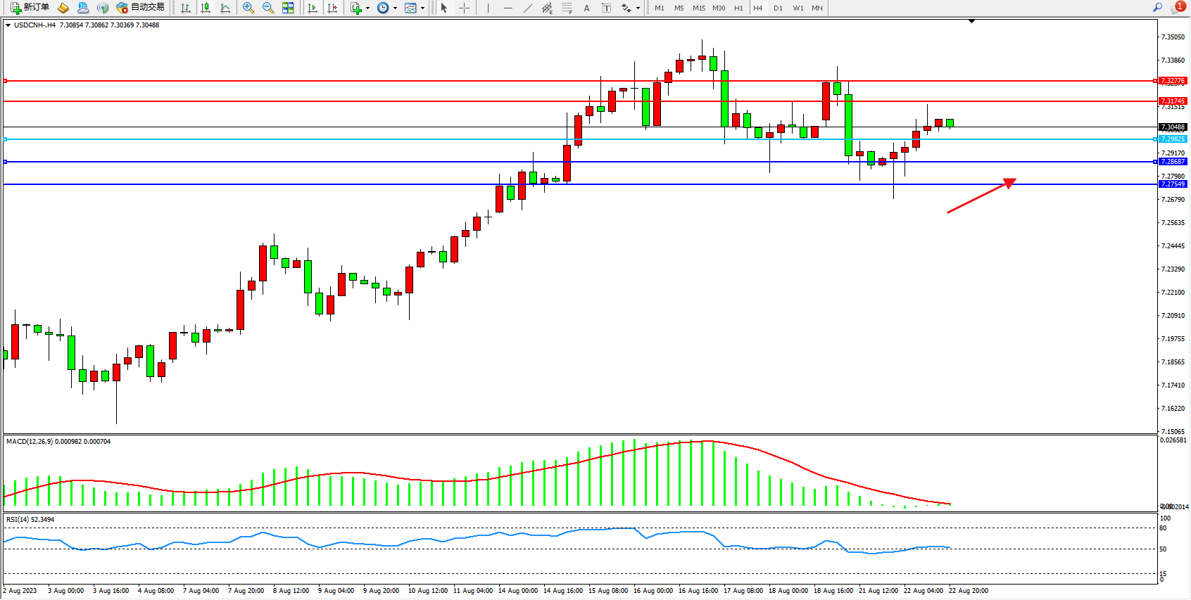 阻力位:7.31745 7.32776