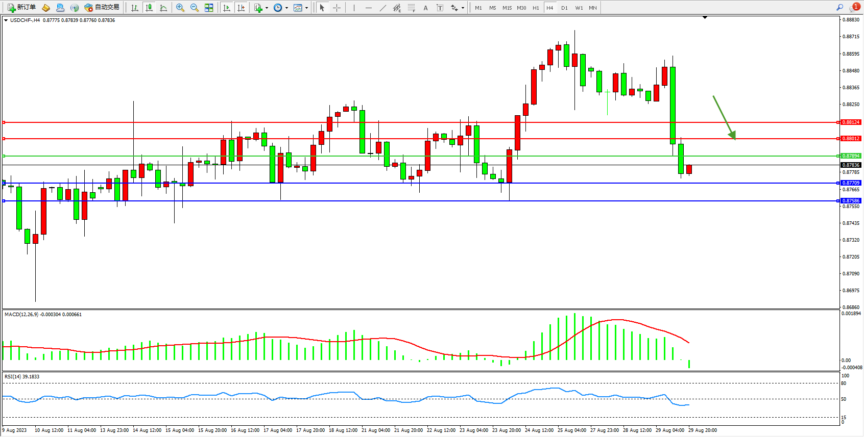 交易策略:0.87894下方看跌,目标0.87709  0.87586