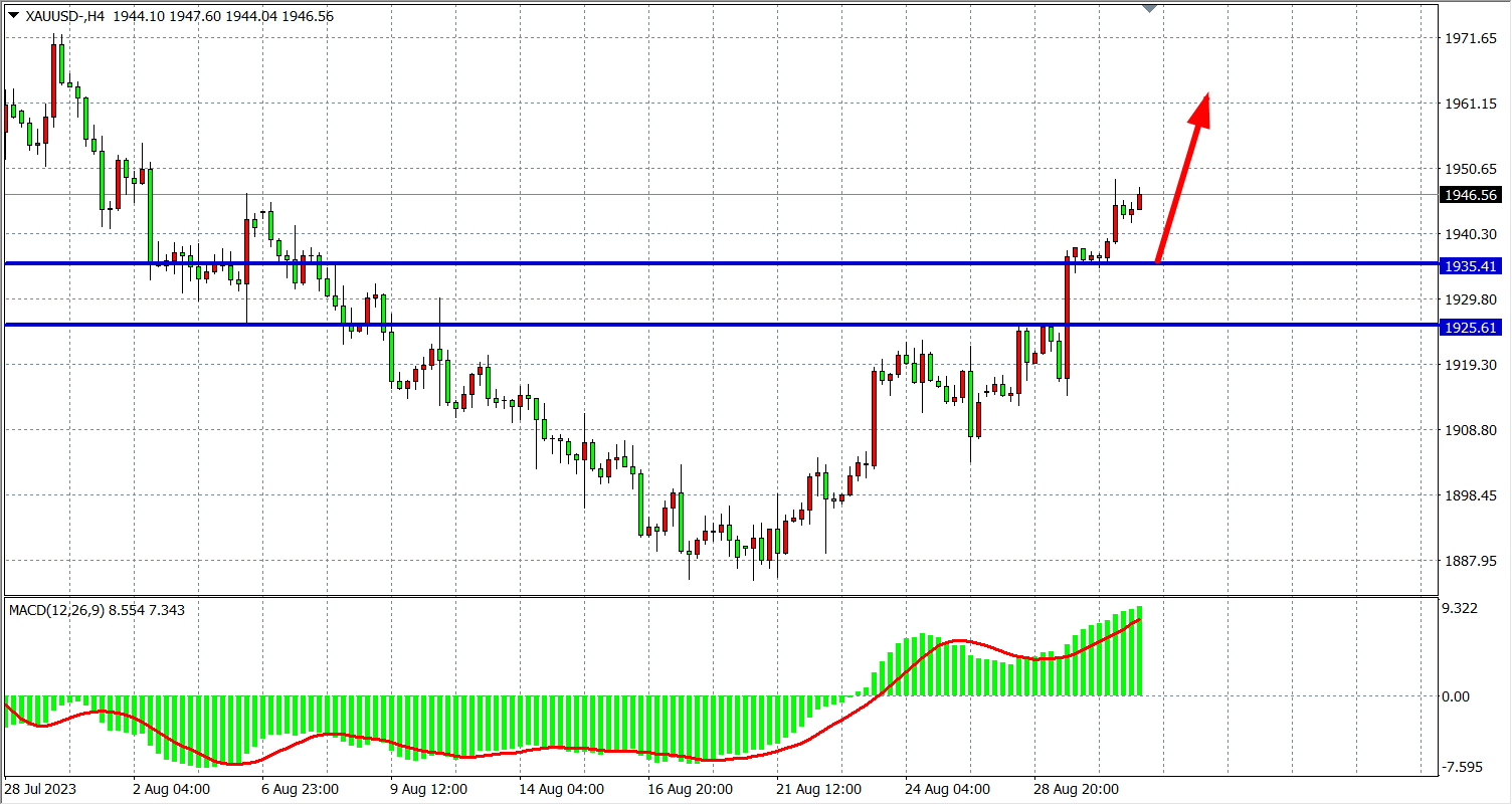 4小时图看,黄金在1935之上继续走高,一度触及1950附近,MACD量能在零轴上放量,短线走势仍处多头,支撑关注1935附近,阻力关注上方1955-1970附近。