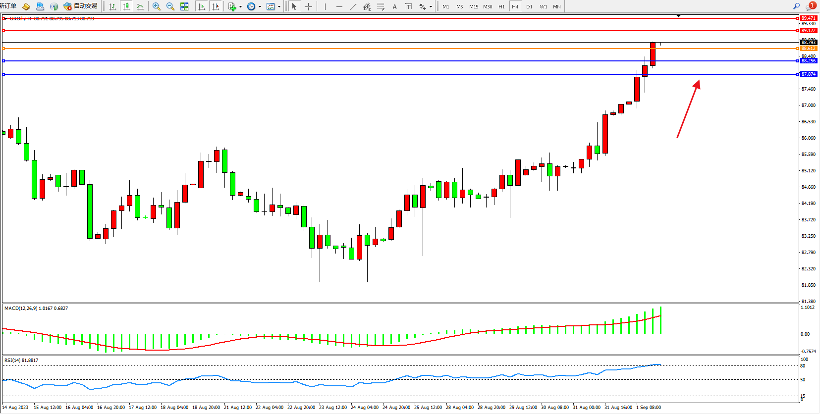 布油UKOil——4小时K线图显示: