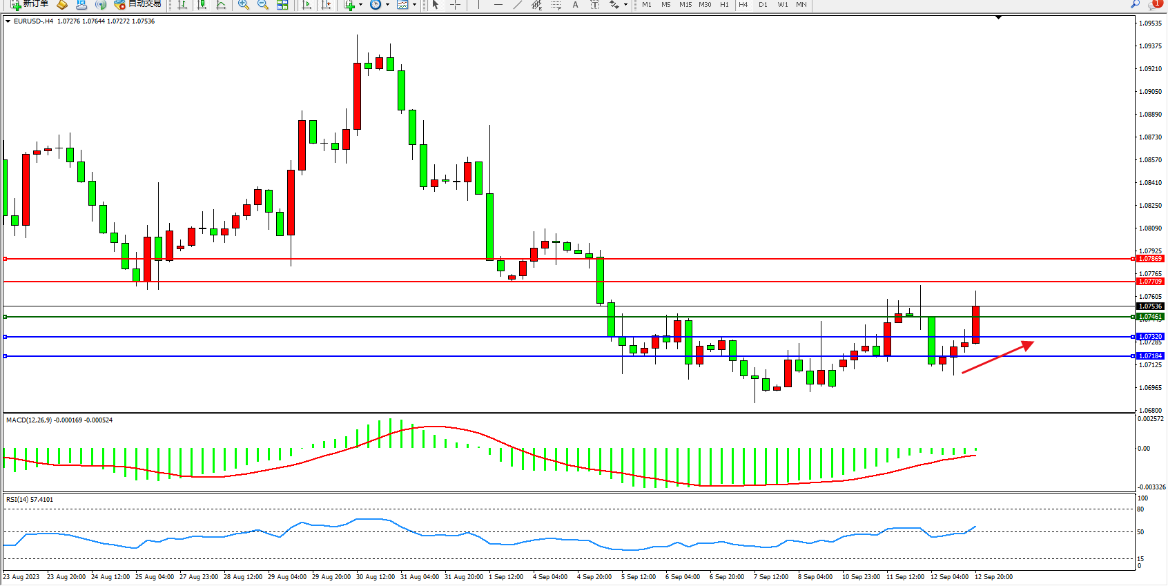 交易策略:1.07461上方看涨,目标1.07709  1.07869
