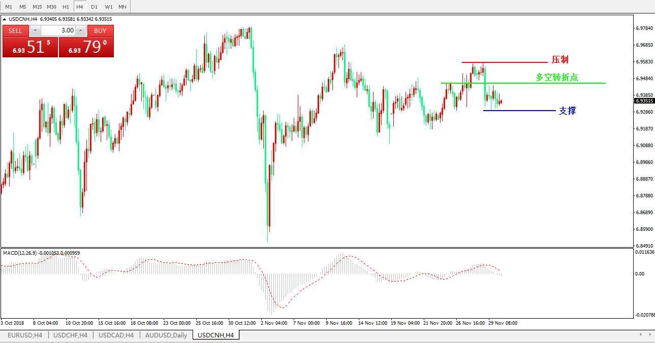 交易策略6.9460之下,看跌,目标价位为6.9314,然后为 6.9208