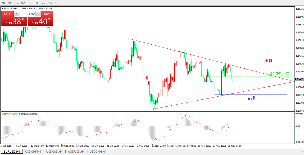 支撑位:1.1300 1.1270 1.1210