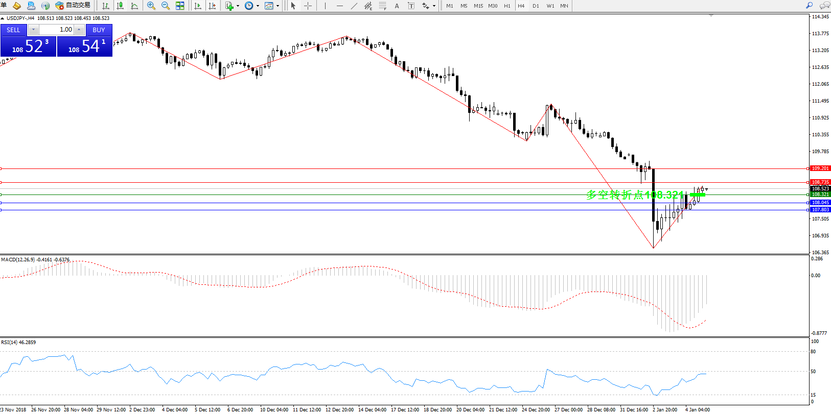 技术点评:V型上扬中,MACD指标多头上行中,RSI指标处于50均衡线下方平移;
