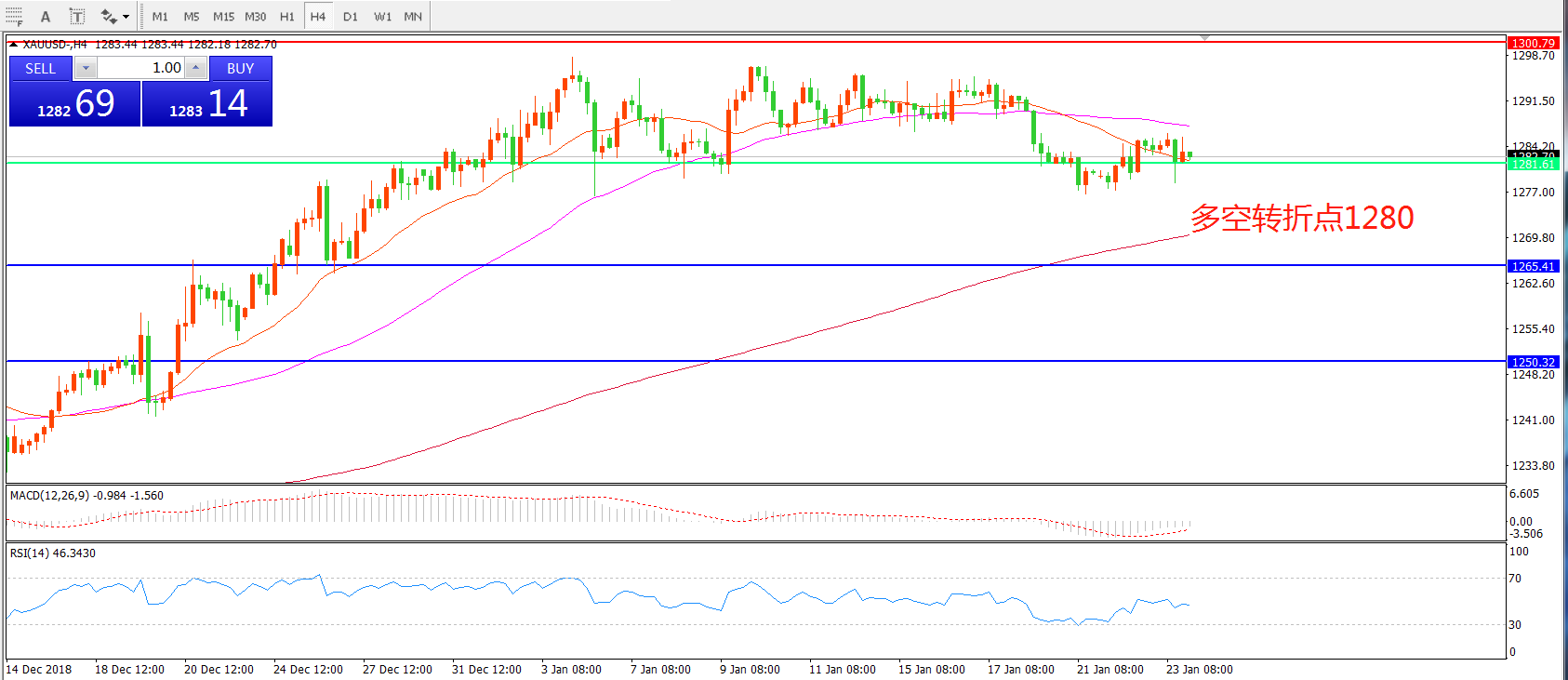 多空转折点:1280.00
