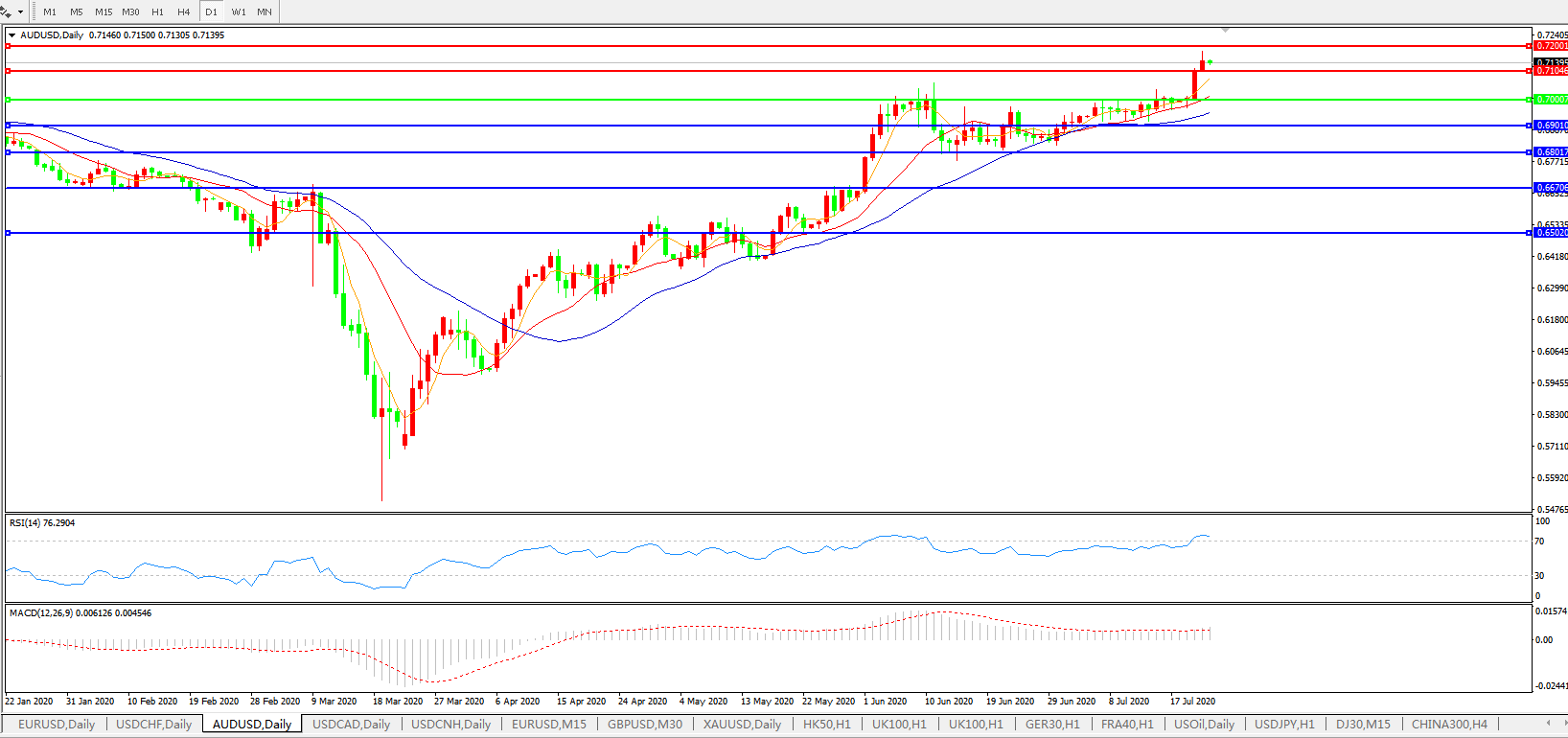 澳元兑美元AUDUSD 日线图: