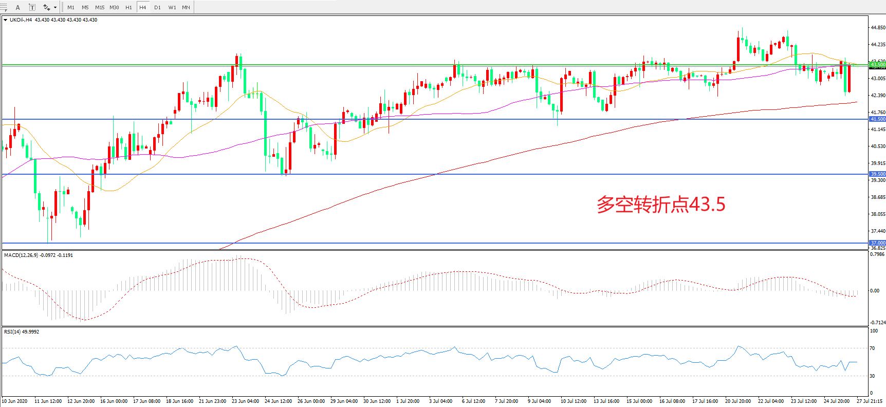 多空转折点:43.50