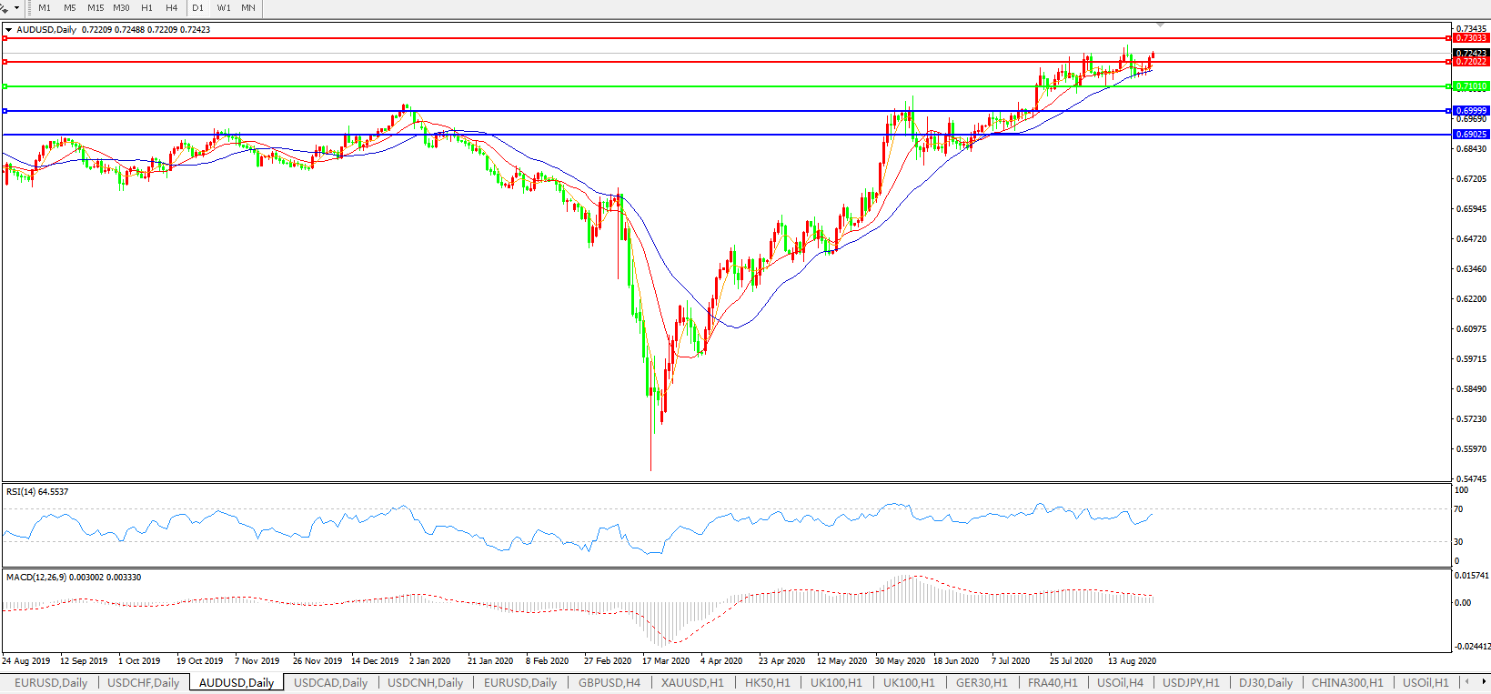 交易策略:0.7100上方看涨,目标0.7200、0.7300