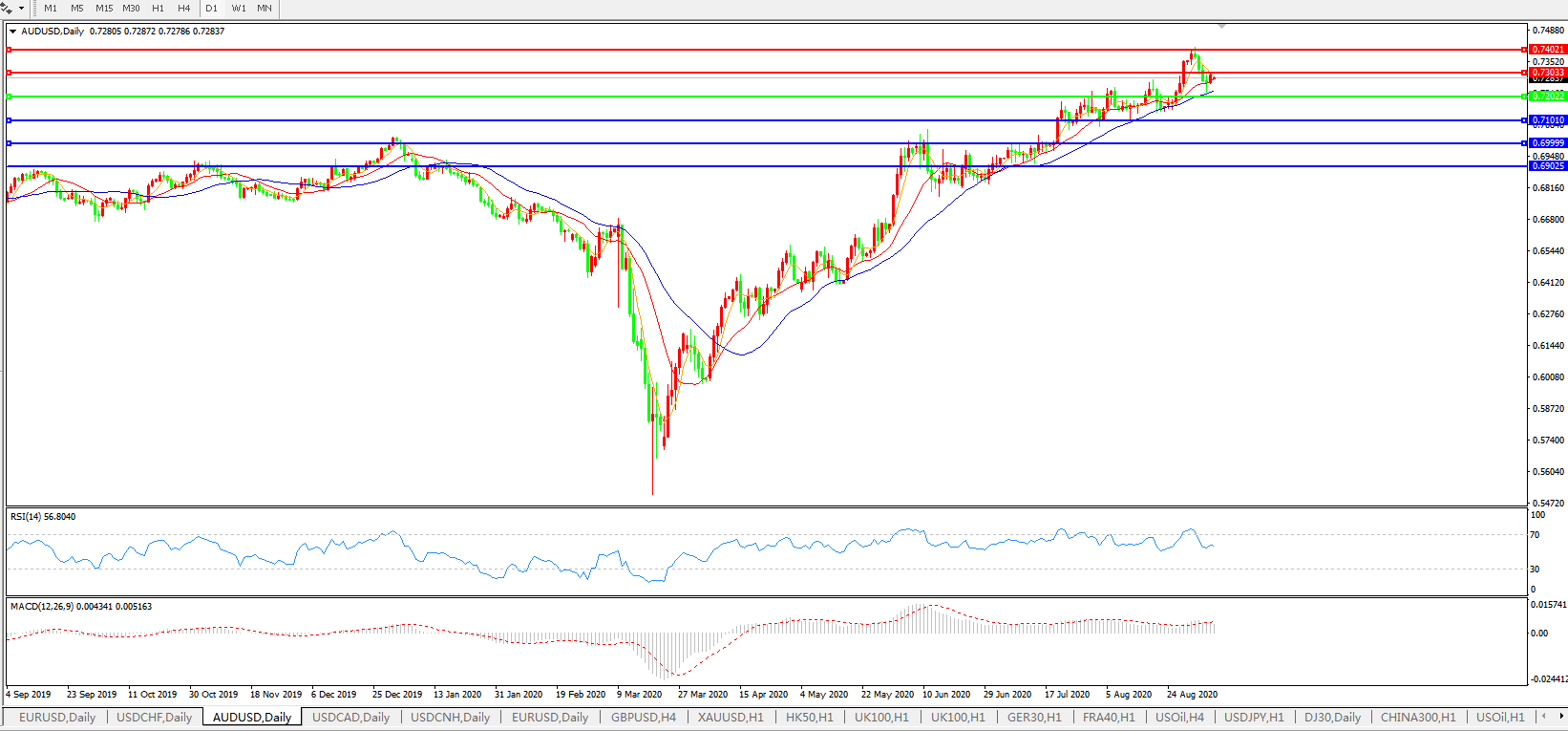 交易策略:0.7200上方看涨,目标0.7300、0.7400