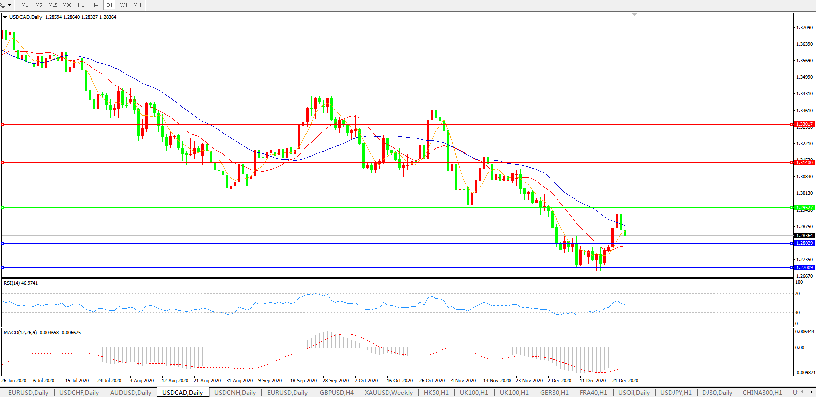 美元兑加元USDCAD 日线图: