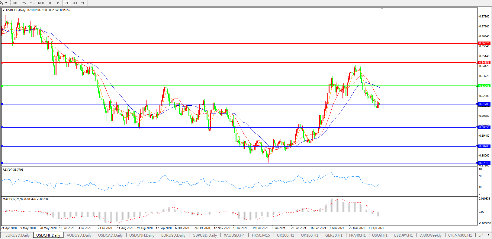 美元兑瑞郎USDCHF 日线图: