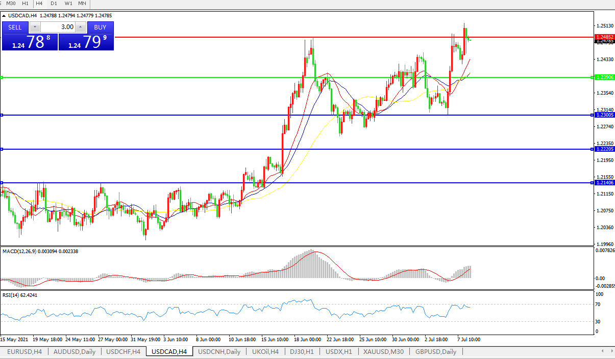 美元兑加元USDCAD    4小时图: