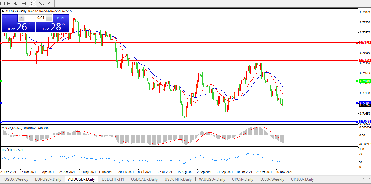 交易策略:0.7400下方看跌,目标0.7240、0.7080