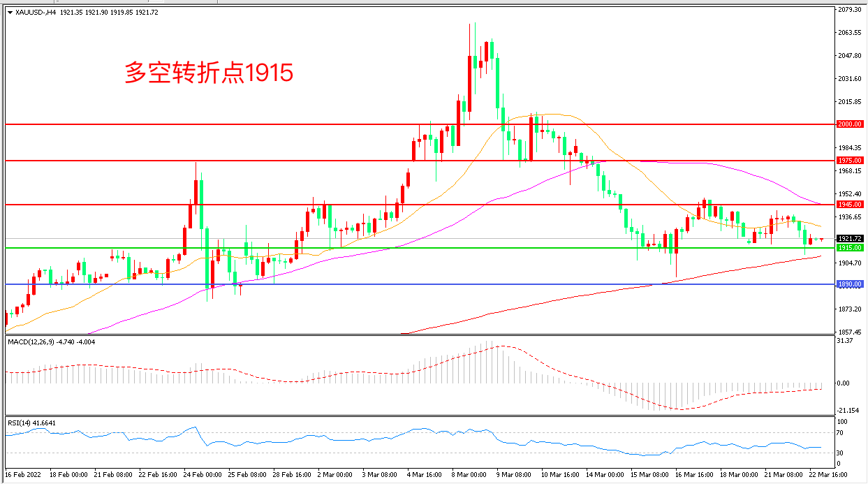 周二(3月22日),在鲍威尔声称可能一次性大幅加息50个基点后,圣路易斯联储主席布拉德称,美联储应该迅速采取行动,对美联储强势加息的预期导致现货黄金再度走低,收报1920.87美元/盎司。本周每天至少有一位美联储官员讲话,如果其他成员延续“鹰派”发言风格,金价暂时会受到压制。