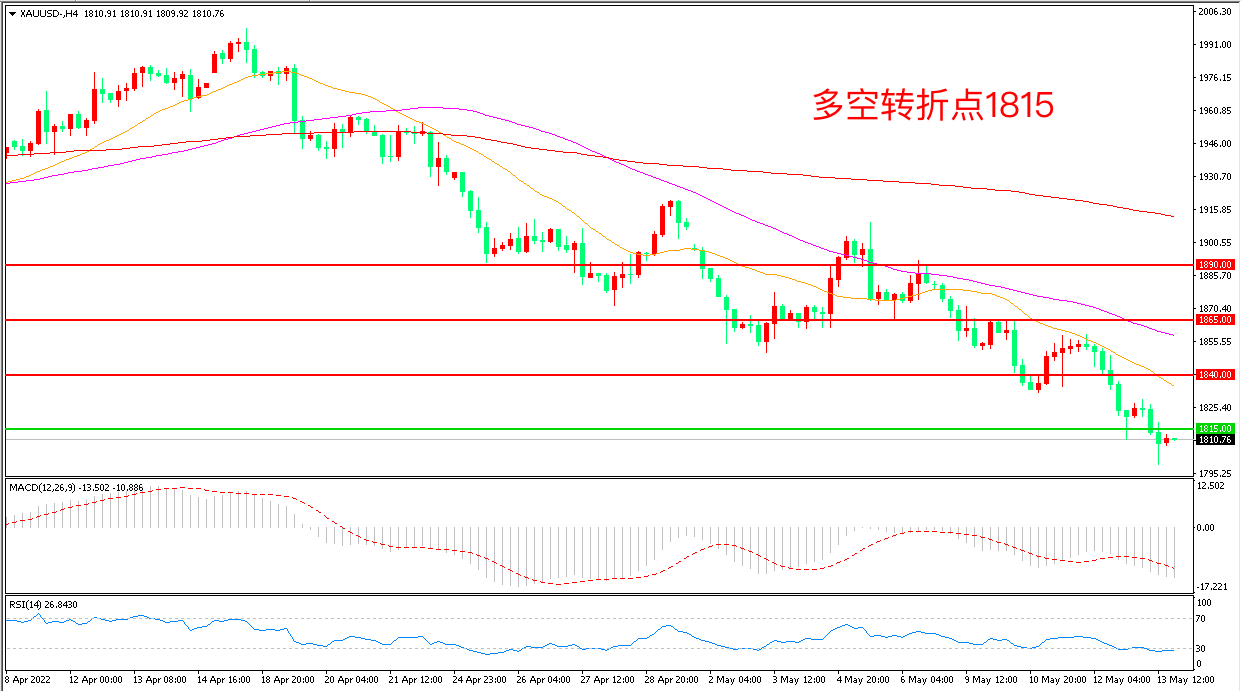 交易策略:在1815.00之下看跌,目标1790.00 1765.00