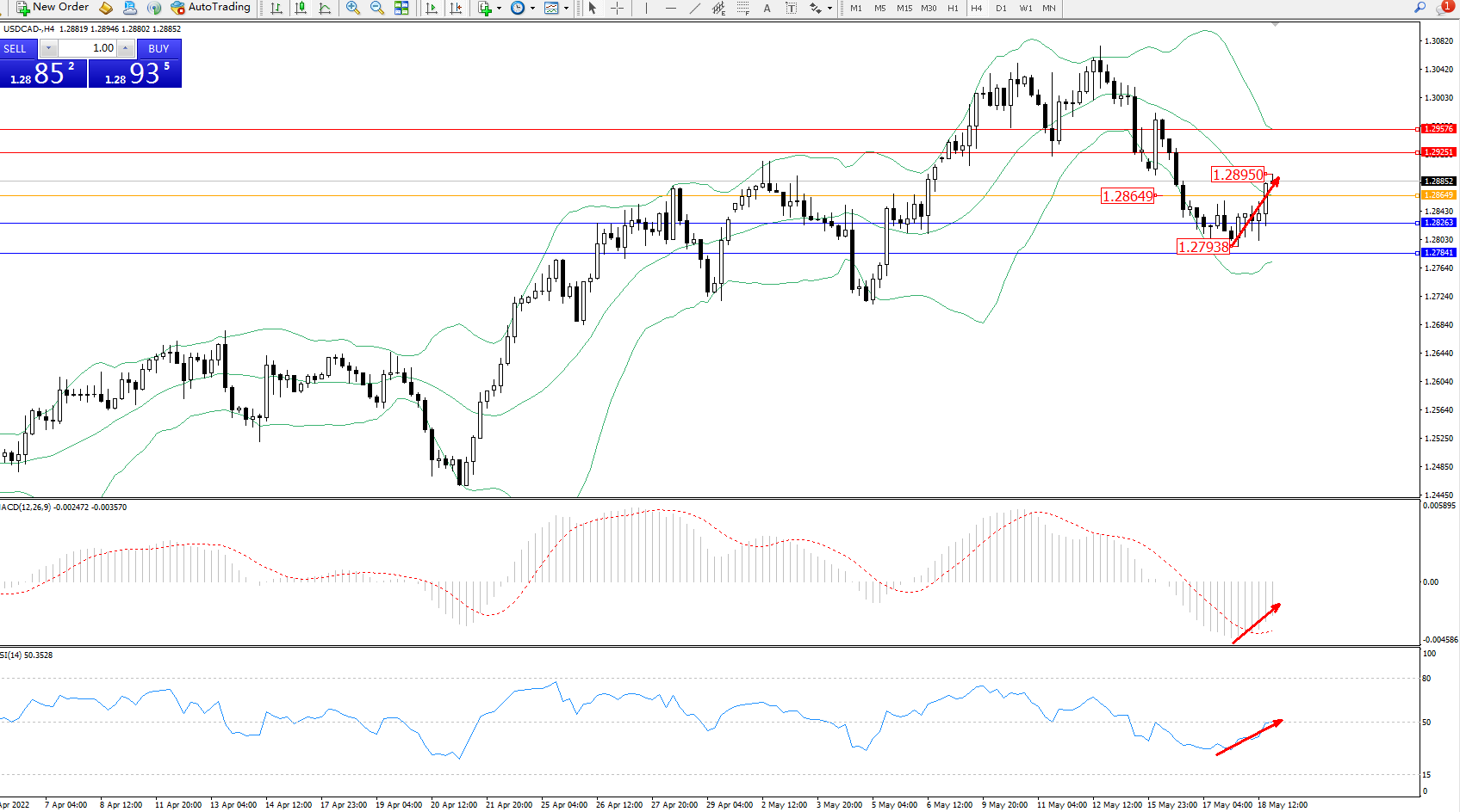 美元加元USDCAD——4小时K线图显示: