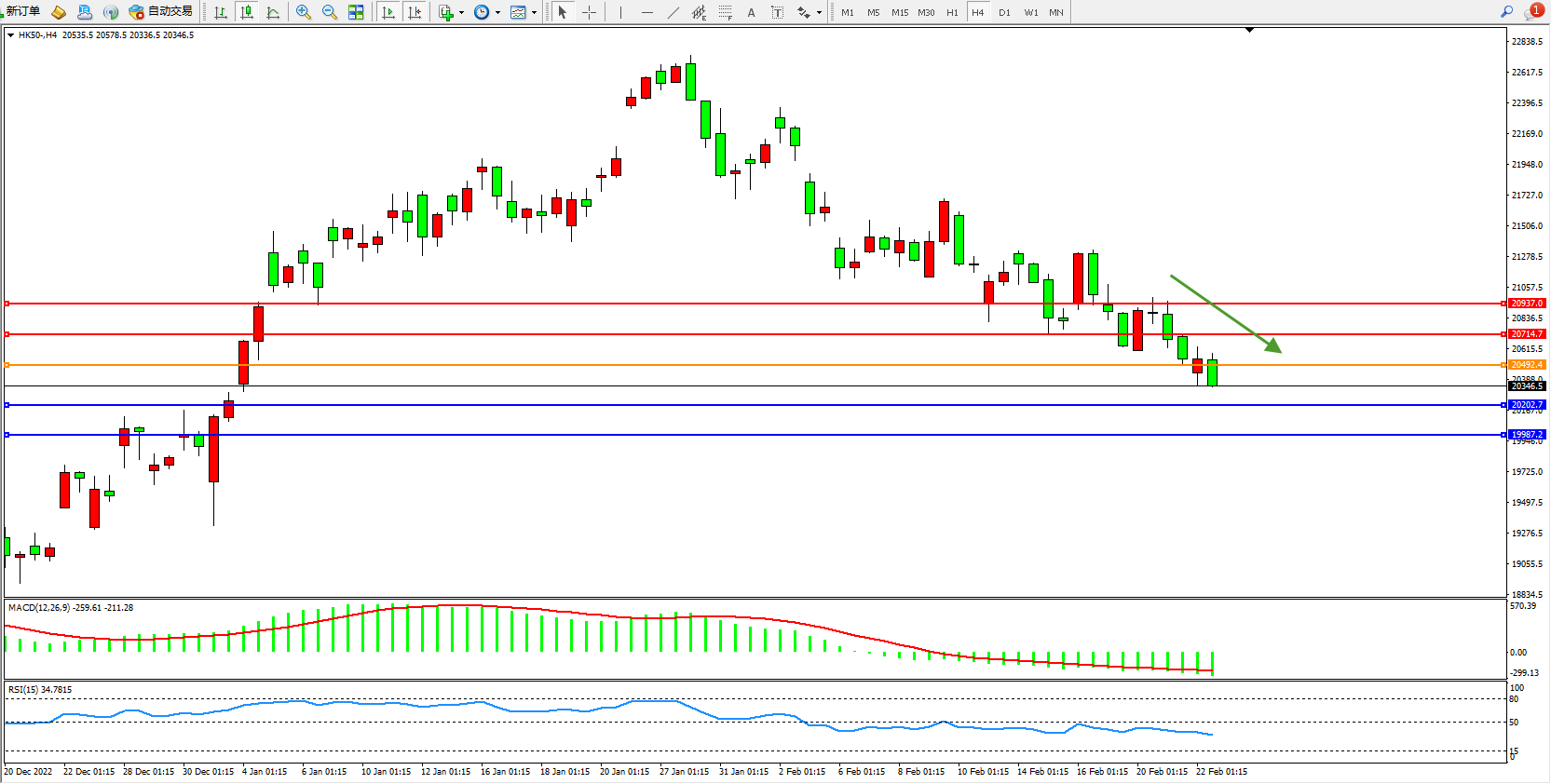 恒指HK50 4小时图