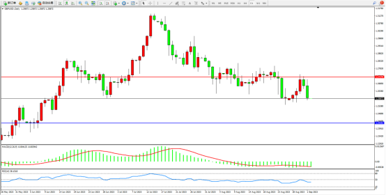 市场空头情绪笼罩,短期跌势再度持续,上方压制关注1.27270附近,低位支撑关注1.24261附近,市场整体偏空头走势中,MACD指标空头区域维持整理,RSI指标处于50均衡线下侧弱势徘徊,如图: